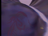 of Crow flight down along the waterfall (note that in the third frame the four blue dots of the